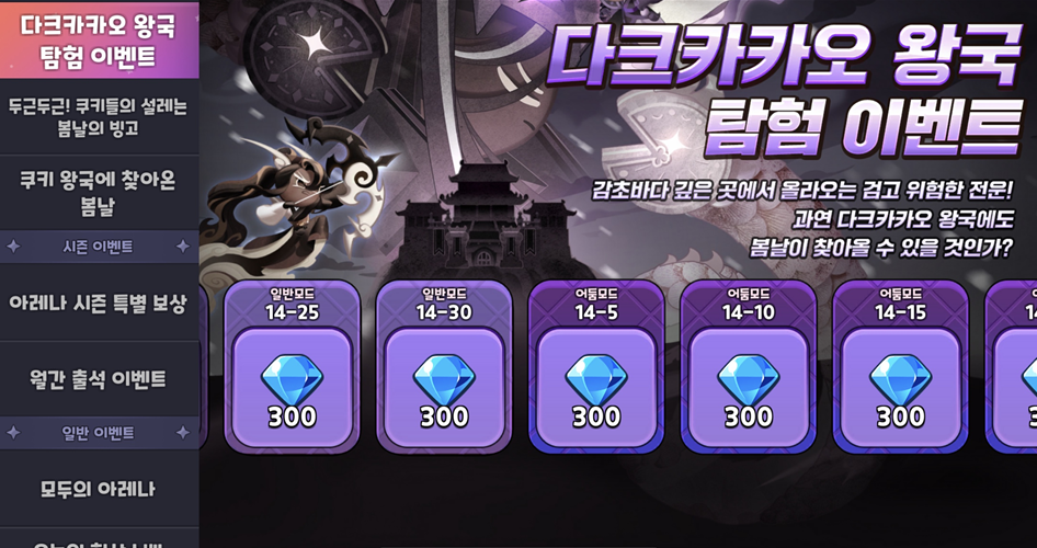 - 다크카카오 왕국 탐험 이벤트에도 에피소드 14 미션이 추가되었고, 일반 모드와 어둠 모드 함께 업데이트되었습니다.